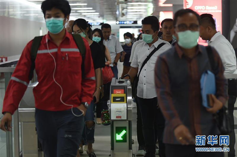 3月3日,在印度尼西亚雅加达,当地民众戴口罩出行。