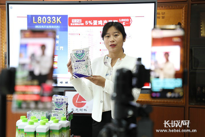 公司技术总监李桂霞在直播中带货,并讲解养殖技术与常识。长城新媒体记者 张晨光 摄