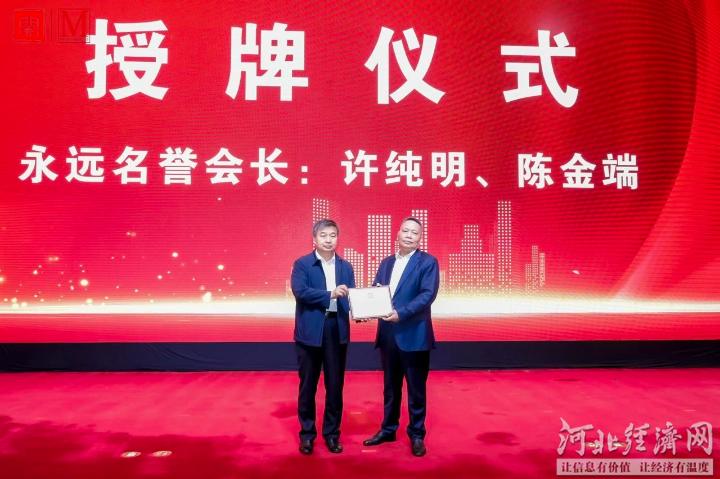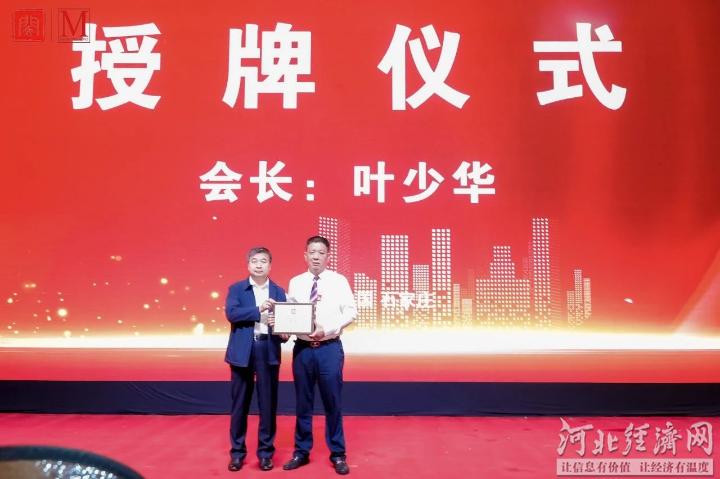 在河北省福建商会第三届理(监)事会就职典礼上,河北省委统战部副部长、省工商联党组书记李红录为河北省福建商会永远名誉会长许纯明颁牌,为第三届河北省福建商会会长叶少华授牌。
