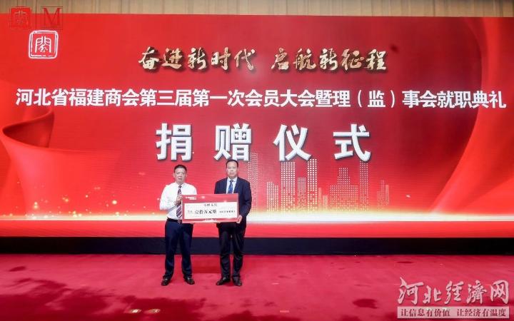 会上,河北省福建商会为行唐县残联捐款10万元用于帮助残疾人群体,残联理事长李国城上台接受捐赠。会后还进行了庆典文艺演出活动。