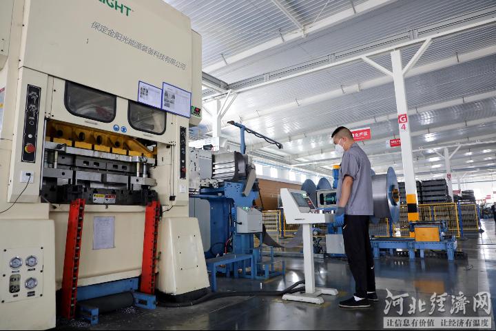 晋州成光电源有限公司冲网生产线。徐清明 摄